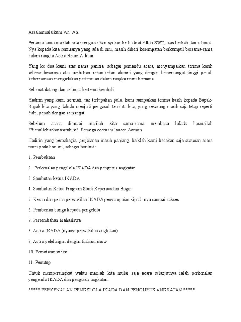 Teks pembawa acara reuni keluarga. We did not find results for: Maybe you would like to learn more about one of these? Check spelling or type a new query.