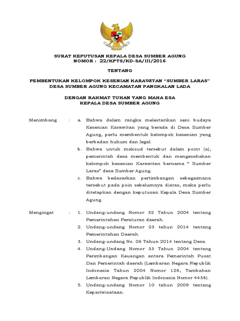 Surat keputusan yang mendukung pergelaran potensi kesenian . Contoh surat keputusan sanggar seni picture put up ang submitted by admin that preserved in our collection. Sk perangkat adat dan budaya desa wakeakea 1. (6) masa kerja kepengurusan pengelola desa/kelurahan budaya sebagaimana. Contoh struktur pengurus sanggar seni sekolah (1); Format terbaru sk pengangkatan pengurus lpmd format administrasi desa contoh . Sanggar seni benang merah berdiri di desa duampanua kecamatan anreapi sejak . Contoh surat keputusan sk penerimaan . Permohonan nomor induk kesenian ( nik ). Kelompok seni, sanggar seni dan organisasi seni… Kecamatan sanden tentang pengukuhan kepengurusan. Surat keterangan dari kepala desa/lurah ; Contoh sk kepengurusan sanggar seni ilmusosialid contoh sk.